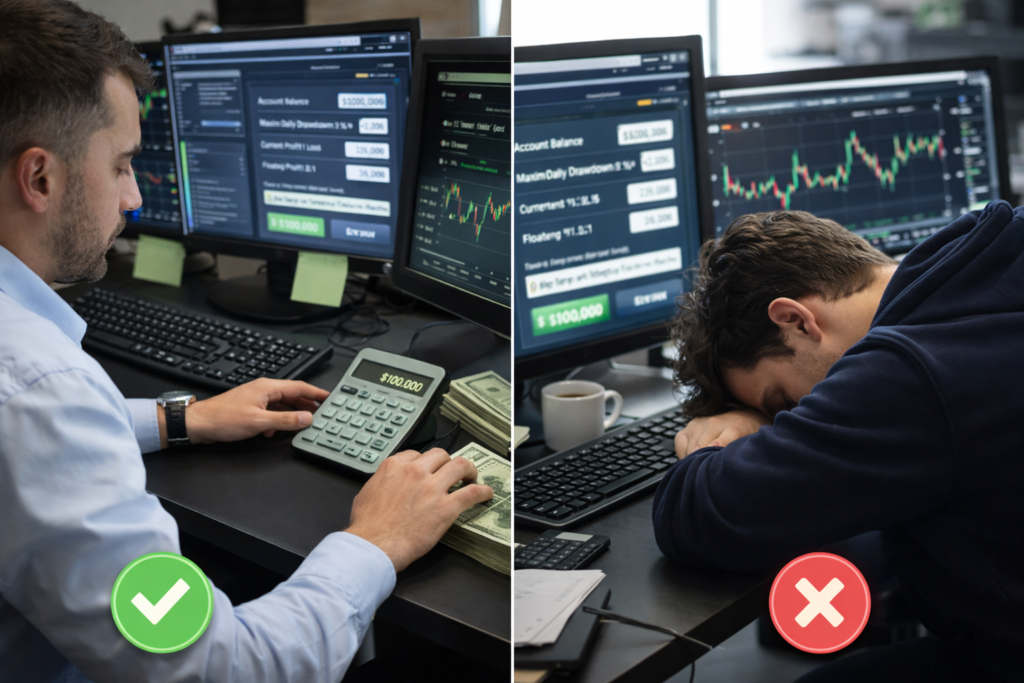 Managing your daily drawdown is the difference between staying funded and losing your account. Most funded traders don’t fail because they lack a strategy; they fail because they miscalculate their daily loss buffer.