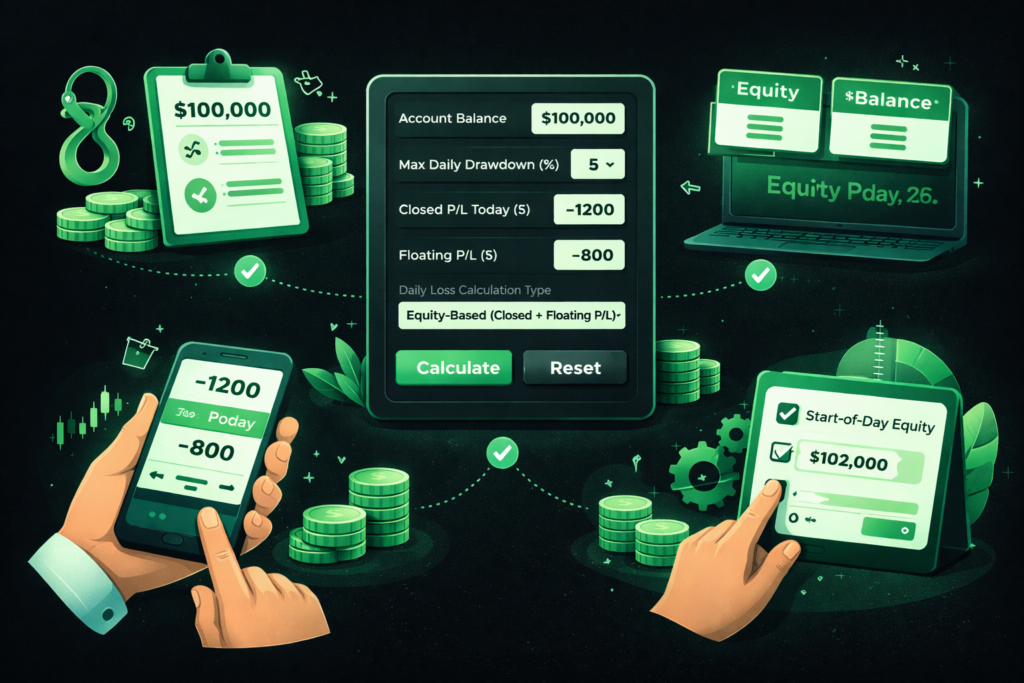 Your funded account isn’t lost because of bad trades; it’s lost because of mismanaged daily drawdown. By understanding how your firm calculates losses, tracking closed and floating P/L, and knowing your exact remaining buffer, you remove guesswork from every decision.