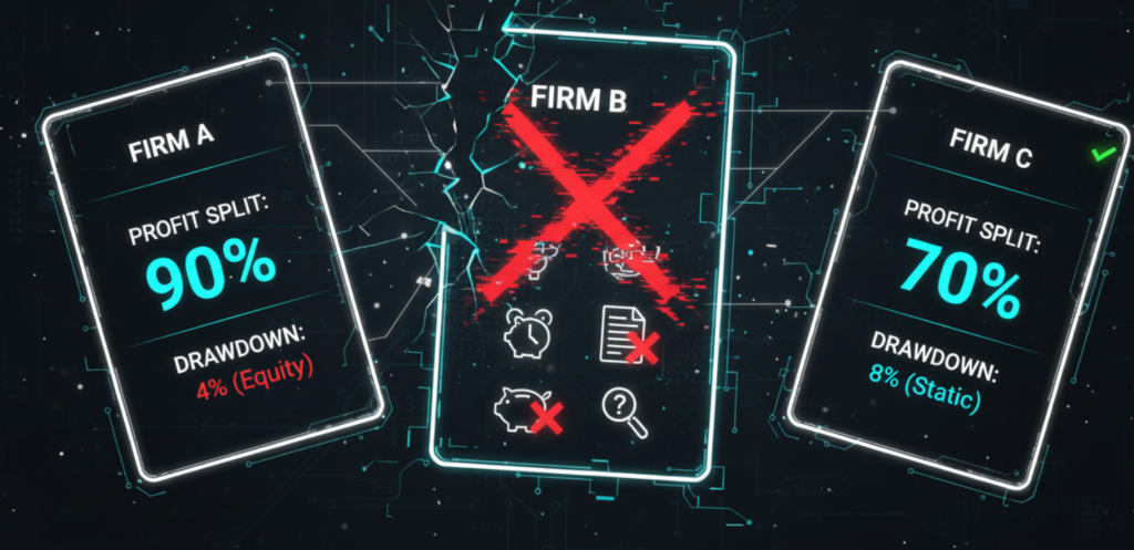 This systematic evaluation protects you from costly mistakes: incompatible firms, payout issues, and evaluations designed for failure rather than success.